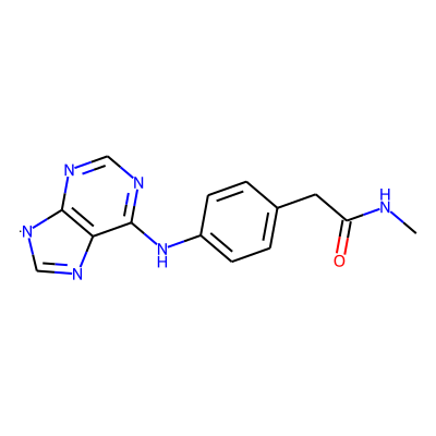 CNC(=O)Cc1ccc(Nc2ncnc3c2N=C[N]3)cc1| HBA: | 7 | RingCount: | 3 |