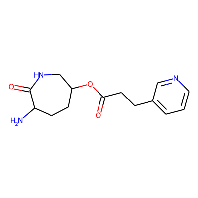 NC1CCC(OC(=O)CCc2cccnc2)CNC1=O| HBA: | 6 | RingCount: | 2 |