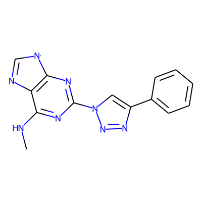 CNc1nc(-n2cc(-c3ccccc3)nn2)nc2c1N=C[N]2| HBA: | 8 | RingCount: | 4 |