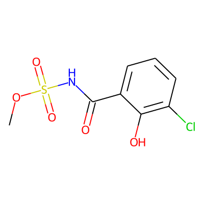COS(=O)(=O)NC(=O)c1cccc(Cl)c1O| HBA: | 6 | RingCount: | 1 |