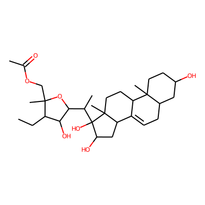 CCC1C(O)C(C(C)C2(O)C(O)CC3C4=CCC5CC(O)CCC5(C)C4CCC32C)OC1(C)COC(C)=O| HBA: | 7 | RingCount: | 5 |