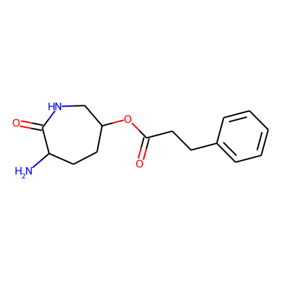NC1CCC(OC(=O)CCc2ccccc2)CNC1=O| HBA: | 5 | RingCount: | 2 |