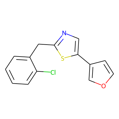 Clc1ccccc1Cc1ncc(-c2ccoc2)s1| HBA: | 2 | RingCount: | 3 |