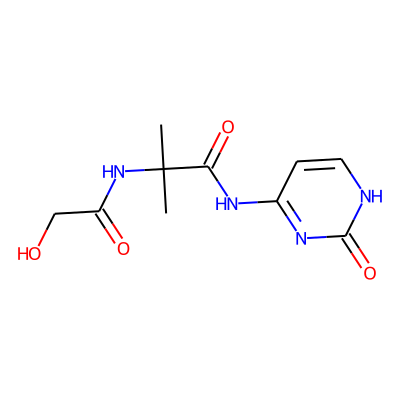 CC(C)(NC(=O)CO)C(=O)Nc1cc[nH]c(=O)n1| HBA: | 8 | RingCount: | 1 |