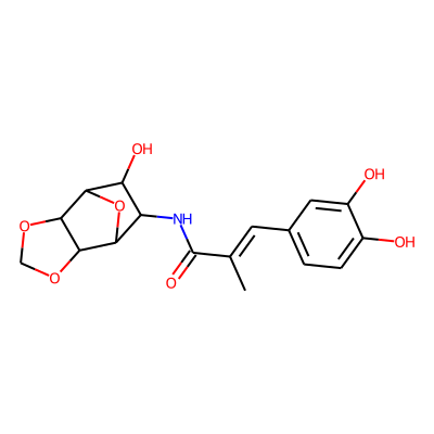 CC(=Cc1ccc(O)c(O)c1)C(=O)NC1C(O)C2OC1C1OCOC21| HBA: | 8 | RingCount: | 4 |