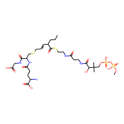 CCCC(C=CCSCC(NC(=O)CCC(N)C(=O)O)C(=O)NCC(=O)O)C(=O)SCCNC(=O)CCNC(=O)C(O)C(C)(C)COP(=O)(O)OP(=O)(O)OC.Nc1ncnc2c1N=C[N]2.O=P(O)(O)OSugarmoiety: