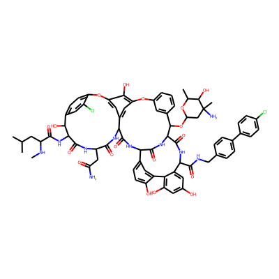 CNC(CC(C)C)C(=O)NC1C(=O)NC(CC(N)=O)C(=O)NC2C(=O)NC3C(=O)NC(C(=O)NC(C(=O)NCc4ccc(-c5ccc(Cl)cc5)cc4)c4cc(O)cc(O)c4-c4cc3ccc4O)C(OC3CC(C)(N)C(O)C(C)O3)c3cccc(c3)Oc3cc2cc(c3O)Oc2ccc(cc2Cl)C1O| HBA: | 28 | RingCount: | 12 |