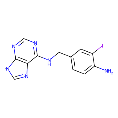 Nc1ccc(CNc2ncnc3c2N=C[N]3)cc1I| HBA: | 6 | RingCount: | 3 |