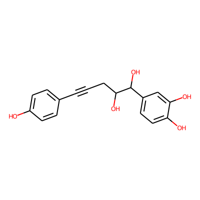 Oc1ccc(C#CCC(O)C(O)c2ccc(O)c(O)c2)cc1| HBA: | 5 | RingCount: | 2 |