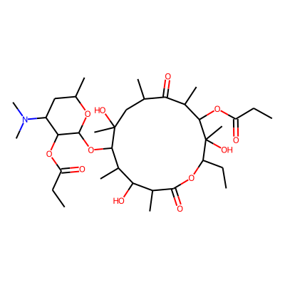 CCC(=O)OC1C(OC2C(C)C(O)C(C)C(=O)OC(CC)C(C)(O)C(OC(=O)CC)C(C)C(=O)C(C)CC2(C)O)OC(C)CC1N(C)C| HBA: | 13 | RingCount: | 2 |