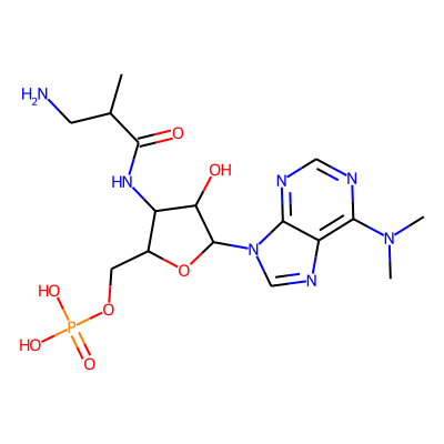 CC(CN)C(=O)NC1C(COP(=O)(O)O)OC(n2cnc3c(N(C)C)ncnc32)C1O| HBA: | 14 | RingCount: | 3 |