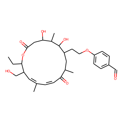 CCC1OC(=O)CC(O)C(C)C(O)C(CCOc2ccc(C=O)cc2)CC(C)C(=O)C=CC(C)=CC1CO| HBA: | 8 | RingCount: | 2 |