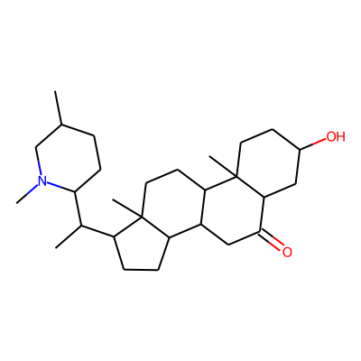 CC1CCC(C(C)C2CCC3C4CC(=O)C5CC(O)CCC5(C)C4CCC23C)N(C)C1| HBA: | 3 | RingCount: | 5 |