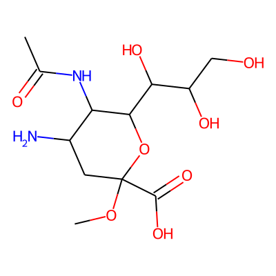 COC1(C(=O)O)CC(N)C(NC(C)=O)C(C(O)C(O)CO)O1| HBA: | 10 | RingCount: | 1 |