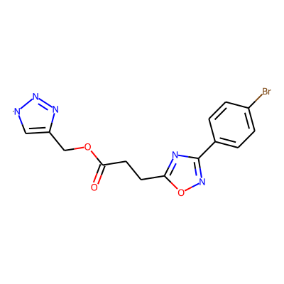 O=C(CCc1nc(-c2ccc(Br)cc2)no1)OCC1=C[N]N=N1| HBA: | 8 | RingCount: | 3 |
