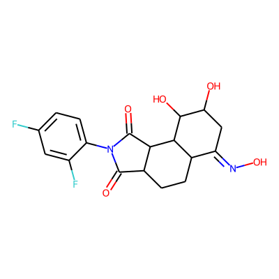 O=C1C2CCC3C(=NO)CC(O)C(O)C3C2C(=O)N1c1ccc(F)cc1F| HBA: | 7 | RingCount: | 4 |