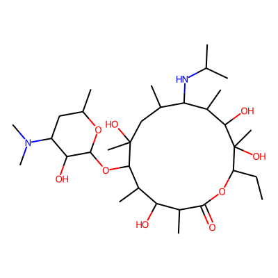 CC[C@@H]1OC(=O)[C@H](C)[C@H](OC2CC(C)(OC)C(O)C(C)O2)[C@H](C)[C@H](OC2OC(C)CC(N(C)C)C2O)[C@@](C)(O)C[C@H](C)[C@H](NC(C)C)[C@H](C)[C@H](O)[C@]1(C)OAglycone:
