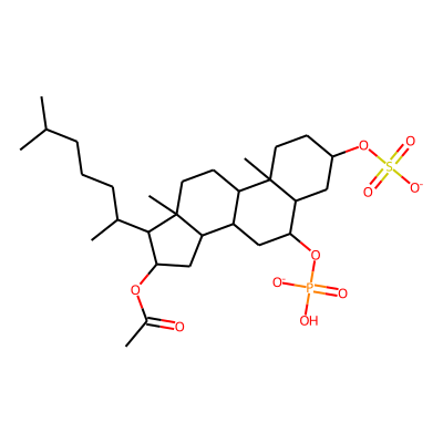 CC(=O)OC1CC2C3CC(OP(=O)([O-])O)C4CC(OS(=O)(=O)[O-])CCC4(C)C3CCC2(C)C1C(C)CCCC(C)C| HBA: | 10 | RingCount: | 4 |