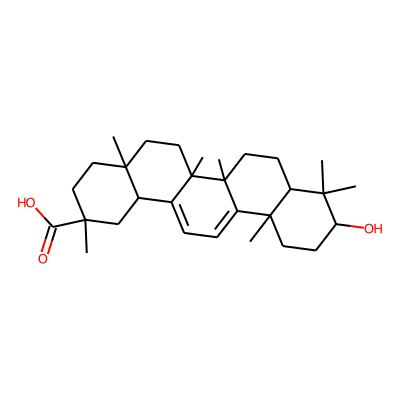 CC1(C(=O)O)CCC2(C)CCC3(C)C(=CC=C4C5(C)CCC(O)C(C)(C)C5CCC43C)C2C1| HBA: | 3 | RingCount: | 5 |
