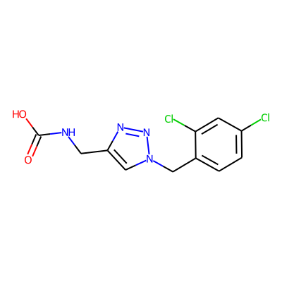 O=C(O)NCc1cn(Cc2ccc(Cl)cc2Cl)nn1| HBA: | 6 | RingCount: | 2 |