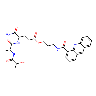 CC(O)C(=O)NC(C)C(=O)NC(CCC(=O)OCCCNC(=O)c1cccc2cc3ccccc3nc12)C(N)=O| HBA: | 12 | RingCount: | 3 |