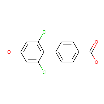 O=C([O-])c1ccc(-c2c(Cl)cc(O)cc2Cl)cc1Sugarmoiety: