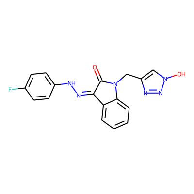 O=C1C(=NNc2ccc(F)cc2)c2ccccc2N1Cc1cn(O)nn1| HBA: | 8 | RingCount: | 4 |
