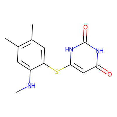 CNc1cc(C)c(C)cc1Sc1cc(=O)[nH]c(=O)[nH]1| HBA: | 5 | RingCount: | 2 |