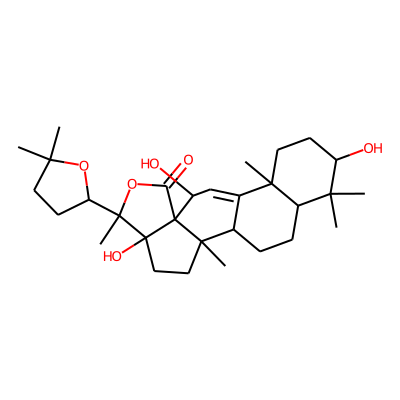 CC1(C)CCC(C2(C)OC(=O)C34C(O)C=C5C(CCC6C5(C)CCC(O)C6(C)C)C3(C)CCC24O)O1| HBA: | 6 | RingCount: | 6 |
