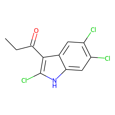 CCC(=O)c1c(Cl)[nH]c2cc(Cl)c(Cl)cc12| HBA: | 2 | RingCount: | 2 |