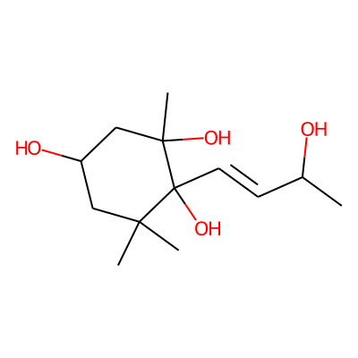 CC(O)C=CC1(O)C(C)(C)CC(O)CC1(C)O| HBA: | 4 | RingCount: | 1 |