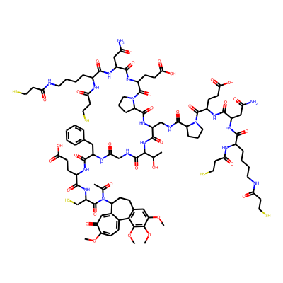 COc1cc2c(c(OC)c1OC)-c1ccc(OC)c(=O)cc1[C@H](N(C(C)=O)C(=O)[C@H](CS)NC(=O)[C@H](CCC(=O)O)NC(=O)[C@H](Cc1ccccc1)NC(=O)CNC(=O)[C@H](NC(=O)[C@H](CNC(=O)[C@@H]1CCCN1C(=O)[C@H](CCC(=O)O)NC(=O)[C@H](CC(N)=O)NC(=O)[C@H](CCCCNC(=O)CCS[C@@H]1O[C@H](CO)[C@H](O)[C@H](O)[C@H]1O)NC(=O)CCS[C@@H]1O[C@H](CO)[C@H](O)[C@H](O)[C@H]1O)NC(=O)[C@@H]1CCCN1C(=O)[C@H](CCC(=O)O)NC(=O)[C@H](CC(N)=O)NC(=O)[C@H](CCCCNC(=O)CCS[C@@H]1O[C@H](CO)[C@H](O)[C@H](O)[C@H]1O)NC(=O)CCS[C@@H]1O[C@H](CO)[C@H](O)[C@H](O)[C@H]1O)[C@H](C)O)CC2