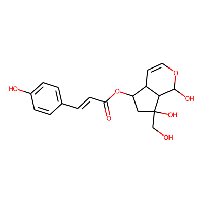 O=C(C=Cc1ccc(O)cc1)OC1CC(O)(CO)C2C(O)OC=CC12Sugarmoiety: