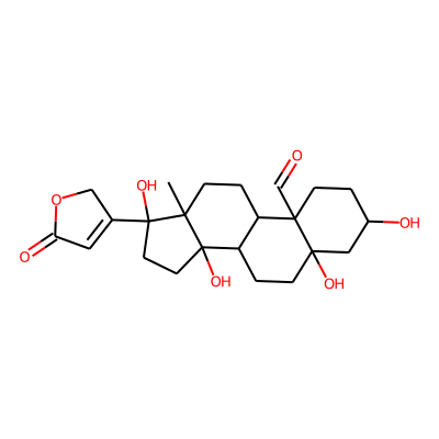 CC12CCC3C(CCC4(O)CC(O)CCC34C=O)C1(O)CCC2(O)C1=CC(=O)OC1| HBA: | 7 | RingCount: | 5 |