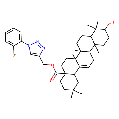 CC1(C)CCC2(C(=O)OCc3cn(-c4ccccc4Br)nn3)CCC3(C)C(=CCC4C5(C)CCC(O)C(C)(C)C5CCC43C)C2C1| HBA: | 6 | RingCount: | 7 |