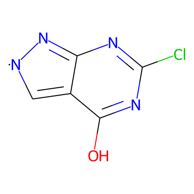 Oc1nc(Cl)nc2c1=C[N]N=2| HBA: | 5 | RingCount: | 2 |