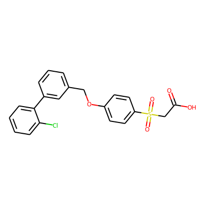 O=C(O)CS(=O)(=O)c1ccc(OCc2cccc(-c3ccccc3Cl)c2)cc1HBA: | 5 | RingCount: | 3 |