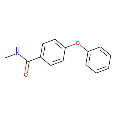CNC(=O)c1ccc(Oc2ccccc2)cc1| HBA: | 3 | RingCount: | 2 |