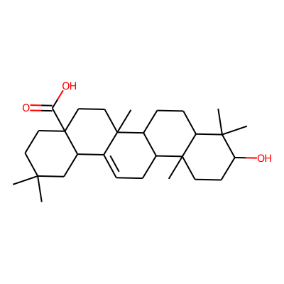 CC1(C)CCC2(C(=O)O)CCC3(C)C(=CCC4C3CCC3C(C)(C)C(O)CCC43C)C2C1| HBA: | 3 | RingCount: | 5 |