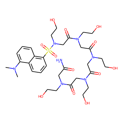 CN(C)c1cccc2c(S(=O)(=O)N(CCO)CC(=O)N(CCO)CC(=O)N(CCO)CC(=O)N(CCO)CC(=O)N(CCO)CC(N)=O)cccc12| HBA: | 19 | RingCount: | 2 |
