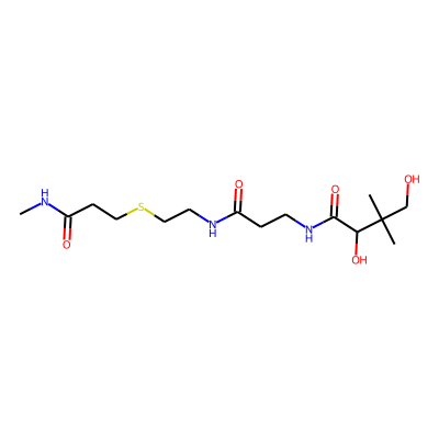CNC(=O)CCSCCNC(=O)CCNC(=O)C(O)C(C)(C)CO| HBA: | 8 | RingCount: | 0 |