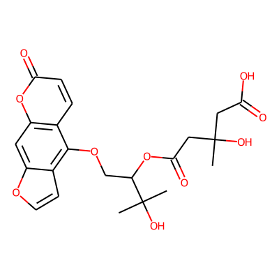 CC(O)(CC(=O)O)CC(=O)OC(COc1c2ccoc2cc2oc(=O)ccc12)C(C)(C)O| HBA: | 10 | RingCount: | 3 |