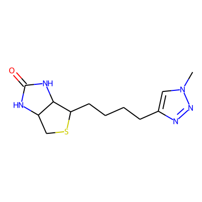 Cn1cc(CCCCC2SCC3NC(=O)NC32)nn1HBA: | 6 | RingCount: | 3 |