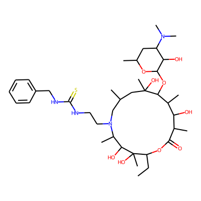 CCC1OC(=O)C(C)C(O)C(C)C(OC2OC(C)CC(N(C)C)C2O)C(C)(O)CC(C)CN(CCNC(=S)NCc2ccccc2)C(C)C(O)C1(C)O| HBA: | 13 | RingCount: | 3 |