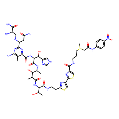 Cc1c(N)nc(C(CC(N)=O)NCC(N)C(N)=O)nc1C(=O)NC(C(=O)NC(C)C(O)C(C)C(=O)NC(C(=O)NCCc1nc(-c2nc(C(=O)NCCC[S+](C)CC(=O)Nc3ccc([N+](=O)[O-])cc3)cs2)cs1)C(C)O)C(O)c1c[nH]cn1| HBA: | 31 | RingCount: | 5 |