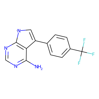 Nc1ncnc2c1C(c1ccc(C(F)(F)F)cc1)=C[N]2| HBA: | 4 | RingCount: | 3 |