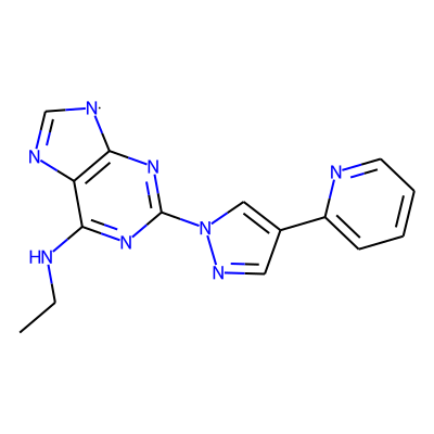 CCNc1nc(-n2cc(-c3ccccn3)cn2)nc2c1N=C[N]2| HBA: | 8 | RingCount: | 4 |