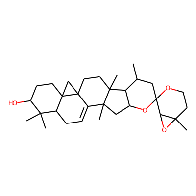 CC1CC2(OCCC3(C)OC32)OC2CC3(C)C4=CCC5C(C)(C)C(O)CCC56CC46CCC3(C)C12| HBA: | 4 | RingCount: | 8 |