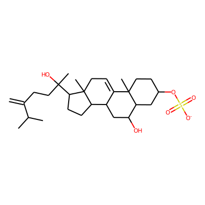 C=C(CCC(C)(O)C1CCC2C3CC(O)C4CC(OS(=O)(=O)[O-])CCC4(C)C3=CCC21C)C(C)C| HBA: | 6 | RingCount: | 4 |