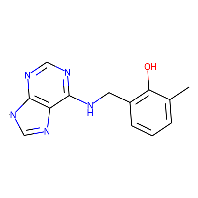 Cc1cccc(CNc2ncnc3c2N=C[N]3)c1O| HBA: | 6 | RingCount: | 3 |